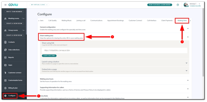 - To add the Waiting Area link to your website, you need to be the Coviu account Owner or Administrator and you may need a Web Developer to assist.