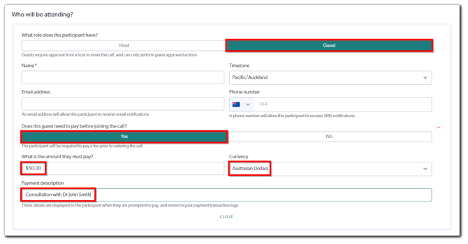 - When scheduling your consultation, simply attach a fee to your Guest(s).