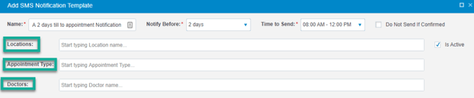 Doctors: Choose the doctors the reminder applies to. If left blank, the reminder will be sent for all doctors.