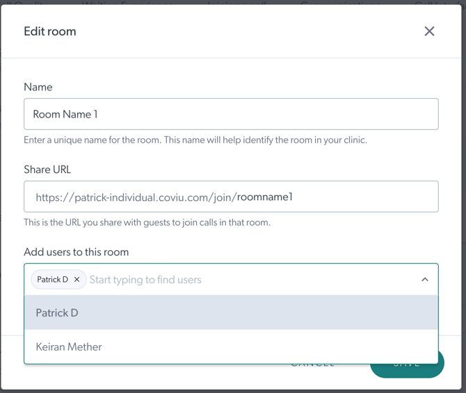 - Adding a User to a Consultation Room will allow that User to see calls coming to that room and join or make calls in that room.