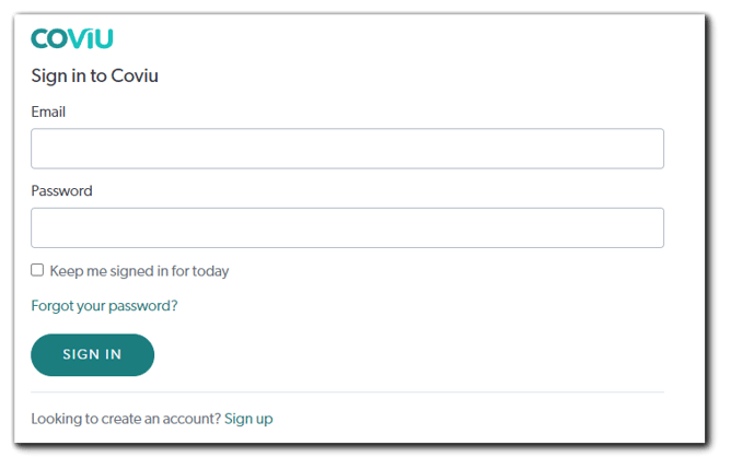 - Log in to your Coviu account as you normally would. If you do not have a Coviu account, you can sign up here.