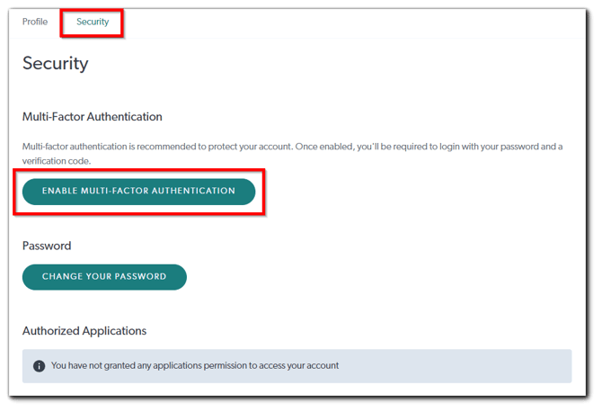 - Click the Security tab and click Enable Multi-Factor Authentication.
