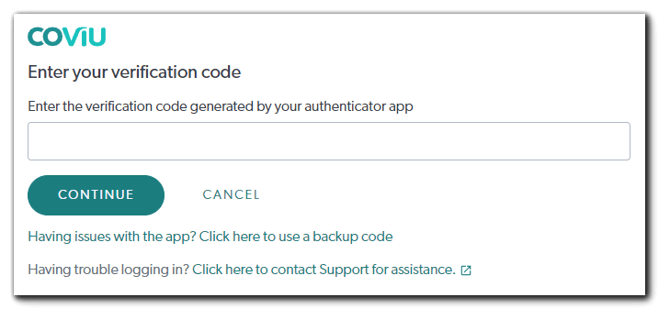 - Enter the 6-digit verification code under Enter Verification Code on your Coviu screen and click Verify Code.