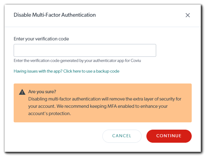 This article describes how you can enable or disable multi-factor authentication for your Coviu account.
