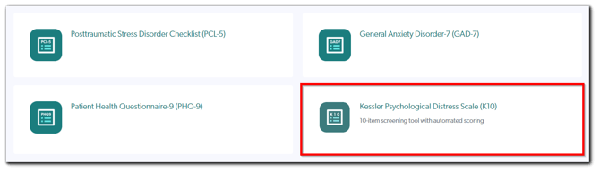 - Scroll down the menu and click Kessler Psychological Distress Scale (K10).