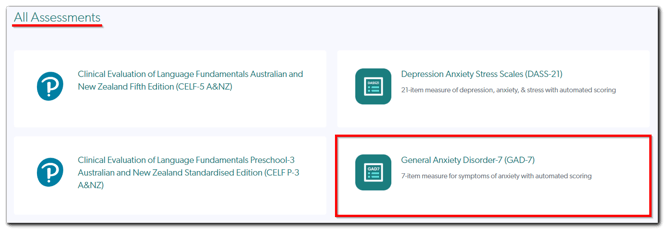 - Scroll down the menu and click General Anxiety Disorder-7 (GAD-7).