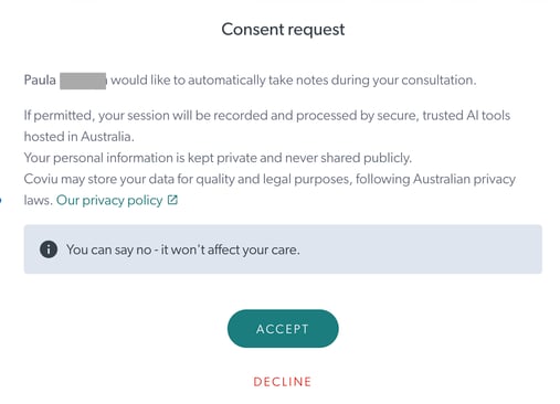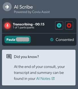 - To protect everyone’s privacy, AI Scribe will only begin once all required participants have provided consent.