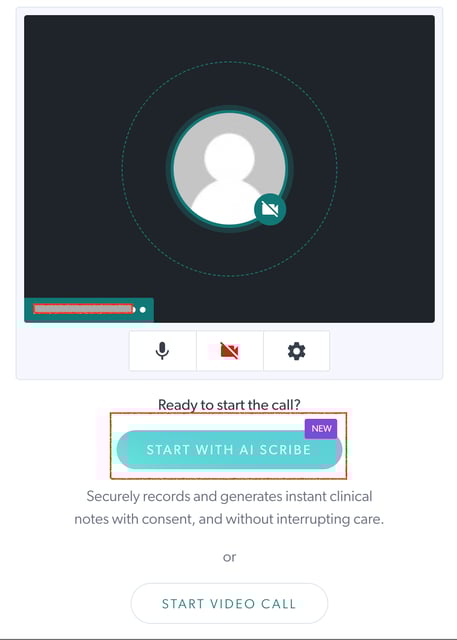 - To start the video call session with AI Scribe, click on Start With AI Scribe upon opening a session or before you join the call.