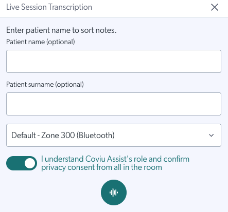 - On your Coviu dashboard, click the AI Scribe icon (top right corner).