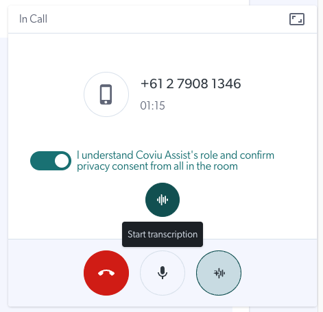 - Start AI Scribe in a Coviu Phone call