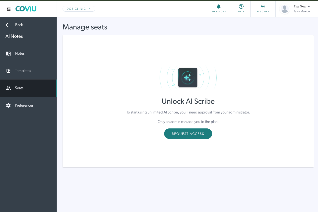 Option 1: From AI Notes > Seats page, you can request a seat. Admin(s) of the clinic will be notified via email.