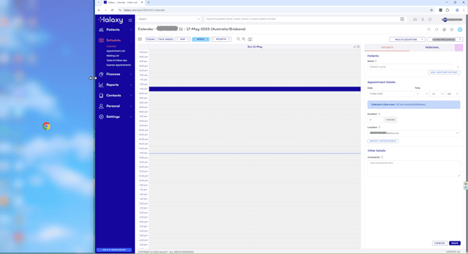 With both Coviu Phone and your PMS/EHR open, click and drag the Coviu browser window (or tab) to the left edge of your screen.