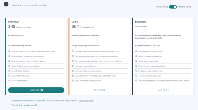 Note: When you sign up for a Coviu trial, you'll experience our Individual Plan, designed for solo practitioners. After the trial, you can choose to continue with this plan or explore our Clinic and Enterprise options to suit your practice's requirements.